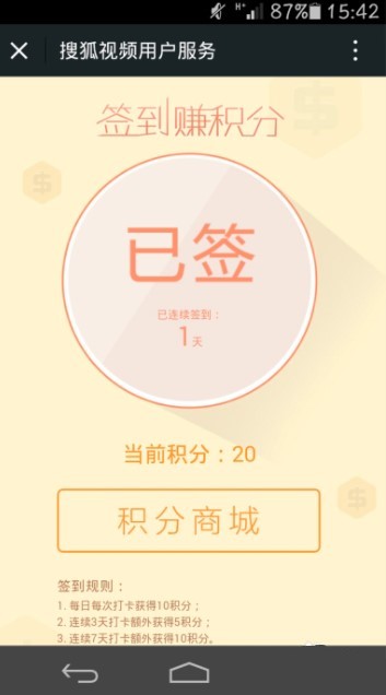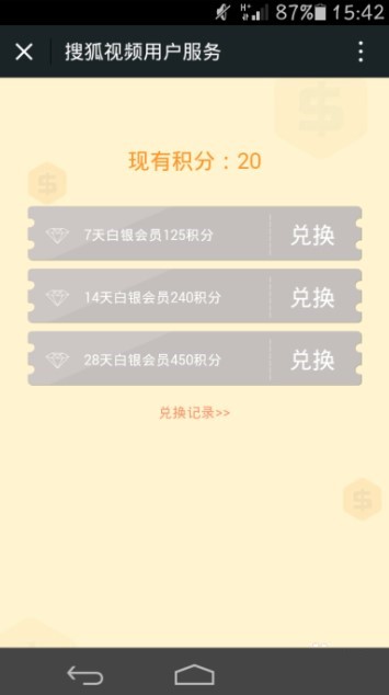 5、点击积分商城,看看多少积分可以换会员,现在搜狐推出很多网络剧,需要会员才能看到后续,让没有会员的人,十分难受, 你在平常时候签签到,想换的时候,直接换会员