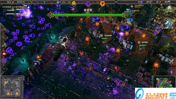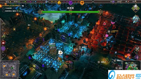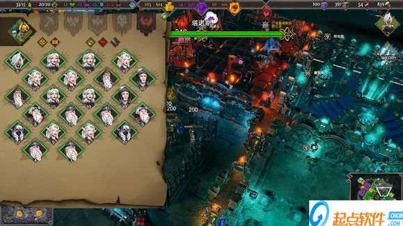 左下角的小地图是地上世界,阴影区域是被破坏和污染的地方,右下角是你的地城缩略图,你可以通过它快速切换镜头到各个角落。