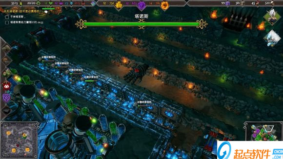 PS::每次敌人进攻,看准了,又矮又胖的,那种炮兵,千万在转角丢一堆亡灵,让他们把加农炮技能放出来。