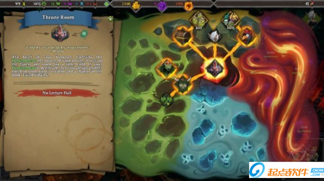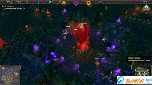 王座区域的红色巨大晶体是你的地城之心,被敌人攻击削减完生命值的话你自然就失败了。等你组织部队攻打地上的时候,迷途的冒险者就会通过你的入口前往你的地下城。如果不想频繁往来地上和救地城之心,那么建议带7-9个出去平推,留几个在地下守地城之心,然后把通道修得尽量弯弯拐拐拖延时间。