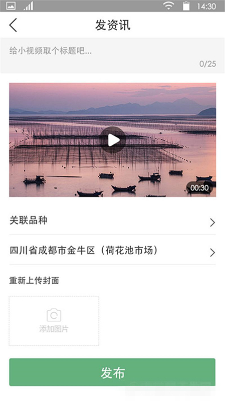 步骤五:填写标题——选择“关联品种”、市场或者产地——是否改变封面——发布