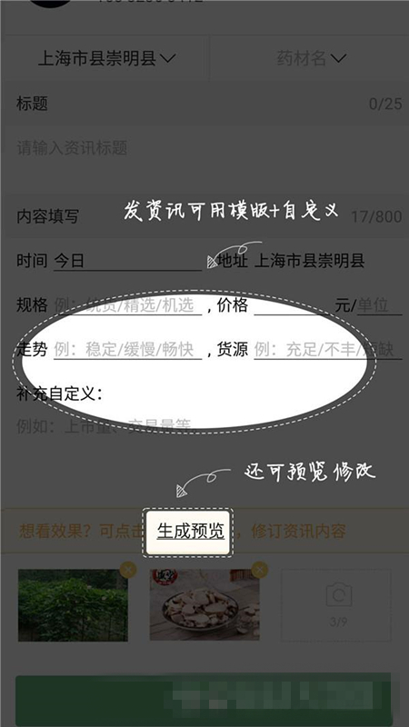 步骤三:填写标题——根据模板或者自己填写药材快讯——发布