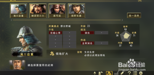 第四步,我们把想要的武将选中(左击点击选中),一般在野武将我都是会要的。