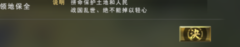 四是志,所谓“志”就是这个势力的发展目标,譬如“领地保全”,就意味着这个势力不求争权夺地,但求安稳度日,在一个时期内达成“志”,就可以获得相应奖励。当进入到下一个时期,“志”会发生改变,玩家也要因应“志”,来变更自己的发展方向。