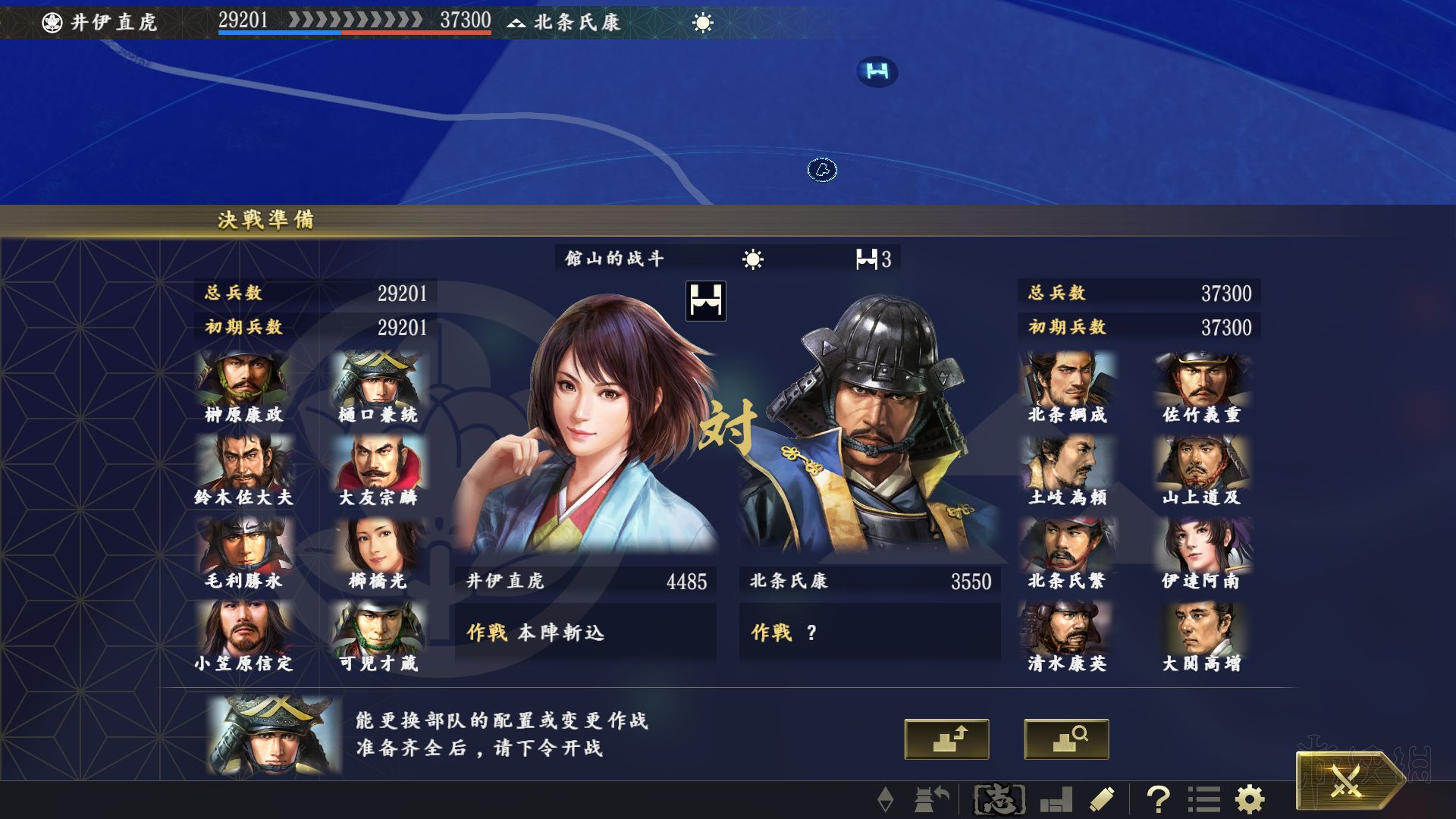 我方部队进入同个郡之后,即将展开决战,玩家如何最大化大名及家臣的力量,取决于如何预测敌人的走向。