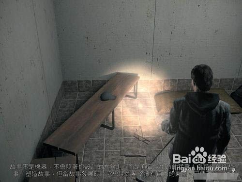 1.跳过了电影剧情 主角从地上起来,张望下四周 首先取得手电,用手电照破前面被黑暗附体之物 即可通过,接着取得手枪