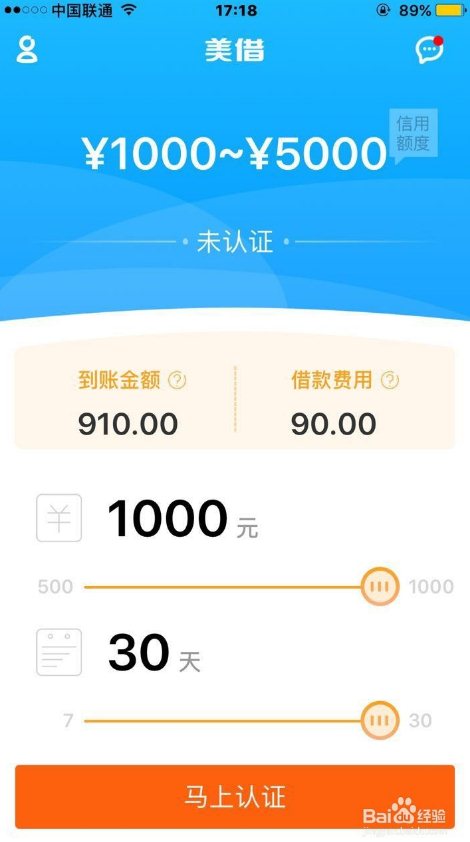 注册完成后是一个信用额度和借款费用的列表,可以看到借不同额度金钱的费用。