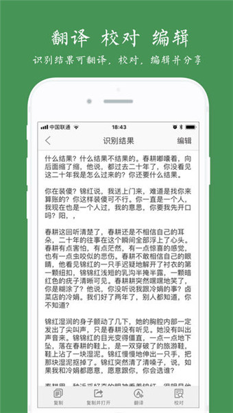 手指流畅顺滑,即可分块选择需要的文字,想要哪段点哪段;识别结果可编辑且选择复制到各种app中使用。