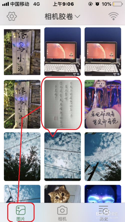 点击“图片”,从手机相册选取并添加要识别文字的“图片”。