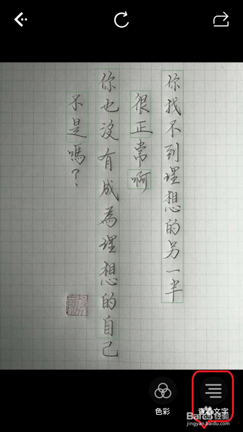2、在选择好自己要提取文字的图片之后,点击右下角的按钮来进行该图片的扫描,从而识别和提取文字。