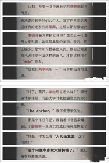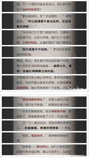 所以,到最后,死的是哪个,活着的事哪个,还真不一定!一个是否目睹了另一个自杀,也不一定!八个人和死有关联,是一定的!