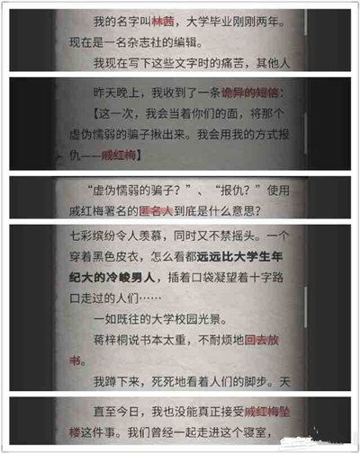 回忆第一章林茜、诡异的短信、戚红梅、匿名人、回去放书、戚红梅坠楼