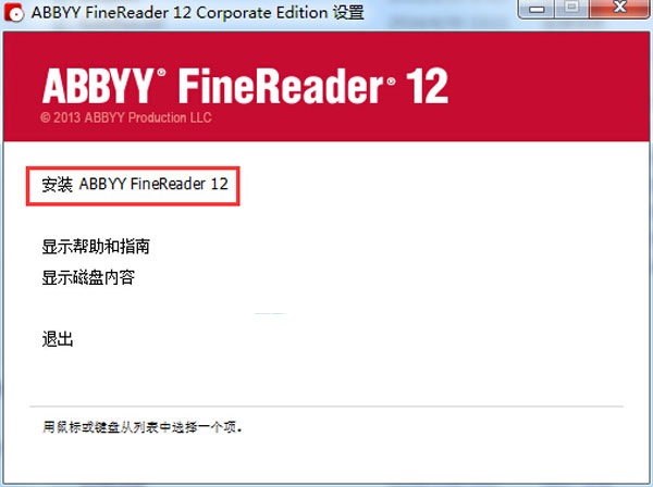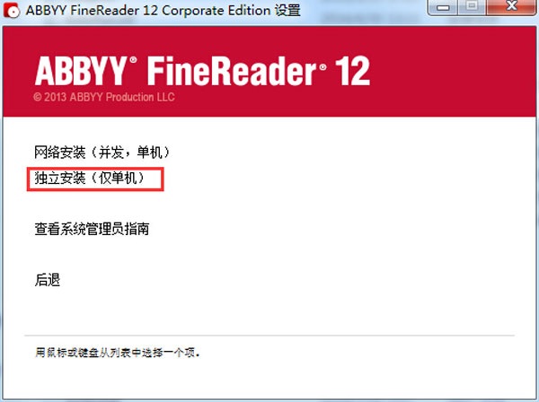 1、解压文件,找到“FineReader_12文件夹中的AutoRun.exe”,运行开始安装。2、在新界面中选择安装ABBYY FineReader 12,再选择“独立安装”。