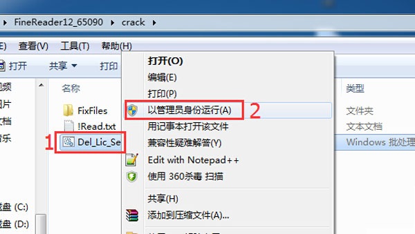 7、下面开始进行破解。找到破解文件中的Del_Lic_Serv.bat,右键单击,选择以管理员模式运行该脚本。