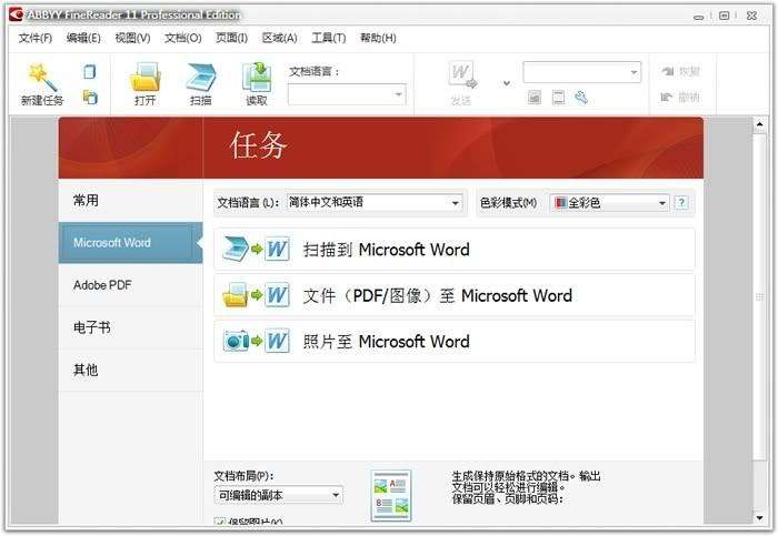 1、提升处理效率通过使用全新的黑白模式,当您不需要彩色时,FineReader 11 提供的处理速度提高 30%。此外,该程序有效利用了多核处理器的优势,使转换速度更快。