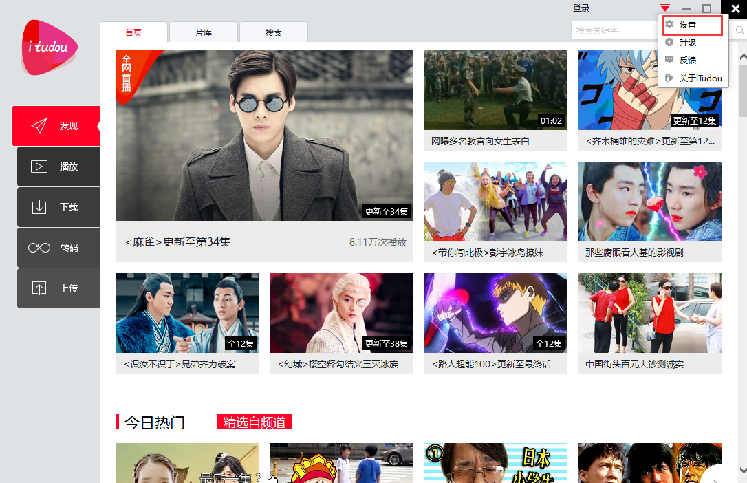 一、打开itudou播放器,点击右上角的更多按钮,选择【设置】。