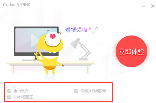 四、安装完毕会提示,之一去掉不必要的捆绑,点击【立即体验】,就可以使用软件啦。
