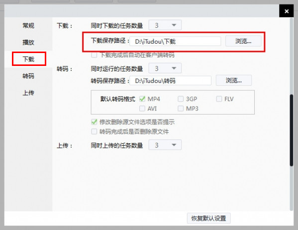 二、在出现的对话框中选择【下载】,就可以看到【下载保存路径】,可以自己设置文件的下载位置哦。