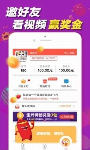 4、淘视界金币兑换比例为100金币=0.01元,二次以上最低10元提现。
