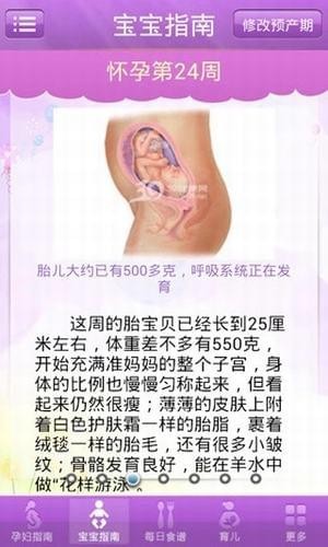 【预产期计算】根据末次月经计算预产期,准确掌握宝宝的出生日期。【孕周知识】包括孕期1-40周每周的孕妈必备、本周概述、宝宝成长、妈妈变化、注意事项、孕期常识,以及产期、临盆、婴儿用品知识。