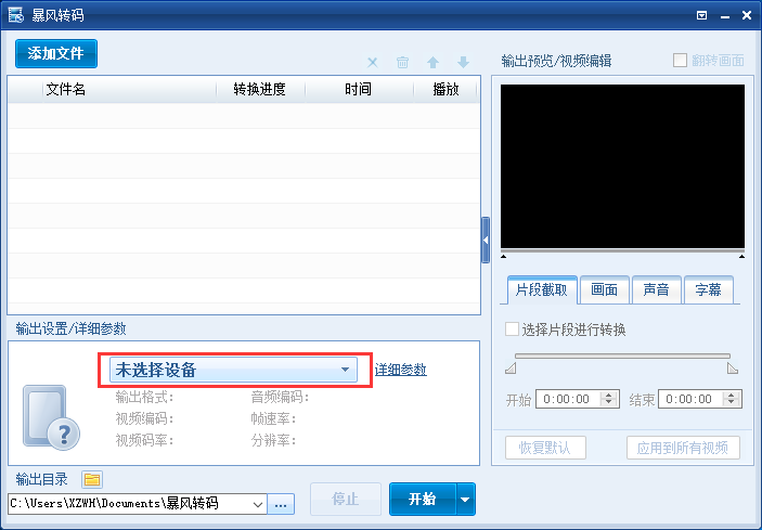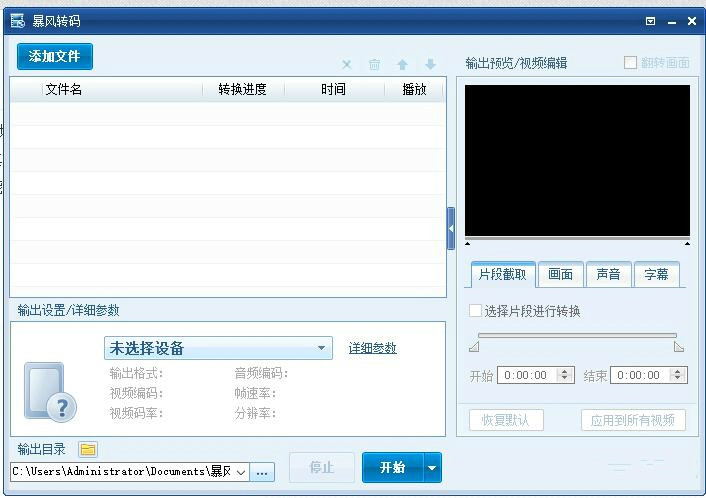1、打开暴风转码器,我们看到这个转码器其实主要的功能是转码 不过他的裁剪视频功能确实也是不错的