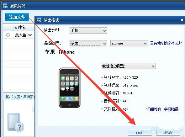 3、接下来,我们选择一下输出的手机品牌和型号,这一步骤对于转码影响不大。