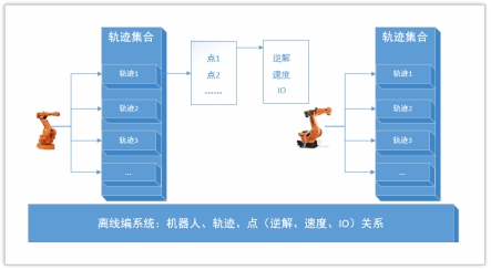 RobotArt的轨迹离线编程系统复杂却又简单。机器人作为运动主体,轨迹作为数据核心,通过零件的点、线、面信息生成轨迹,轨迹点上记录所属机器人的逆解结果、速度、IO事件等,并可进行参数化修改。整个编程系统一气呵成,使得操作流畅,数据信息记录准确,参数修改简单便捷。