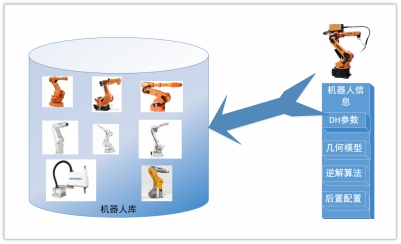 机器人编程系统深度开放,通过定义机器人功能,开放以下几类接口:DH参数、几何模型、逆解算法、后置配置,体现一功能多接口模式,增加了技术关联辐射范围。