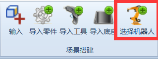 在涂胶案例中,选择KUKA-KR150-R2700-extra型号的机器人,在【场景搭建】选择【导入机器人】如图所示:
