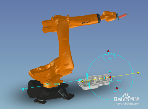 确定范围的参考方法:将机器人底座拖动到台子边缘后,利用三维球的长操作柄向左拖动机器人,输入平移长度。
