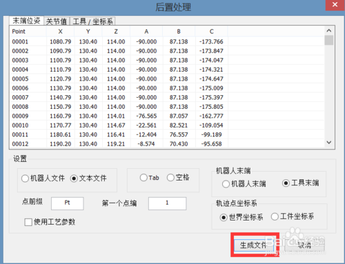 仿真没有问题后,接下来后置,后置是生成机器人代码,将后置的内容拷贝到示教器即可完成真机的运行。