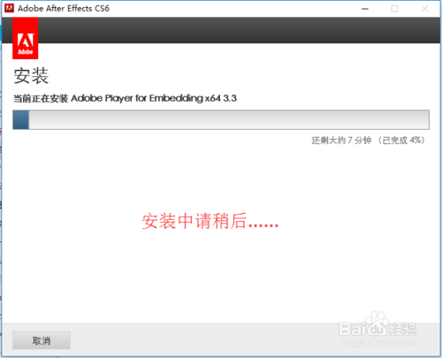 第七步:正在安装Adobe After Effects cs6【AE CS6】请耐心等待一下