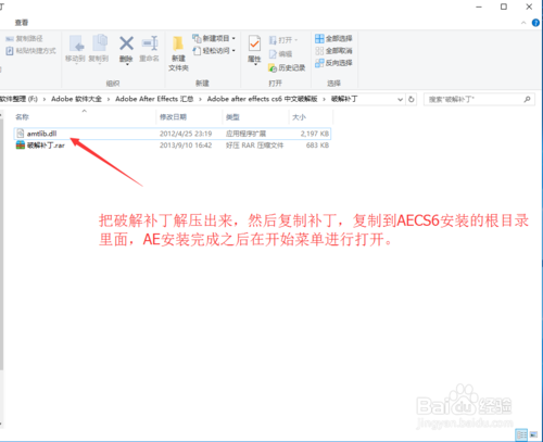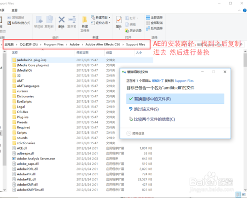 第一步:打开软件的安装路径(安装目录),打开破解补丁文件,进行解压出来,把补丁直接复制到AE根目录即可,即Support Files 文件夹下面。然后进行选择替换该文件。软件这样就破解好了,以后打开软件就不会显示试用30天了