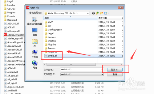 第六步,点击“是”之后,继续会有一个选框,这里我们选择amtilb.dll这个文件,选择点击一下,然后 我们点击“打开”即可。