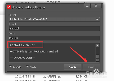 第七步,点击打开之后呢,这里我们看到会有一个显示OK,说明已经注册成功,patch这里也是显示灰色的,说明成功了。