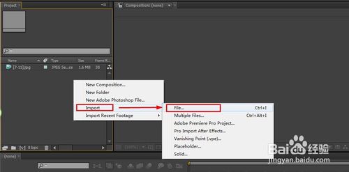 after effects cs6素材导入方法第一种方法就是使用菜单中的“导入”功能进行导入素材。