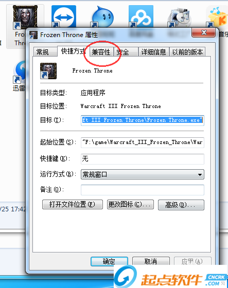 -----魔兽争霸3完整版闪退问题解决方法-----1.右击游戏图标“属性”,弹出对话框。