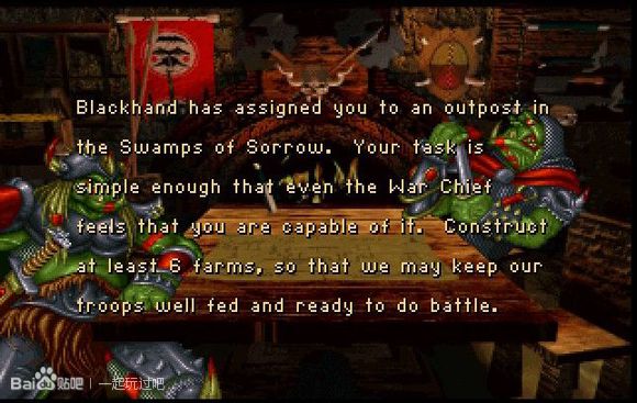 布莱克汉酋长命令你在悲伤沼泽建造一个前哨,他相信你能完成这个简单的任务,建造至少六个农场,这样我们才能保证我们的军队的基本供给,当然,只有傻瓜才不会保护自己的财产,你必须建立一个兵营来保护这些农场。
