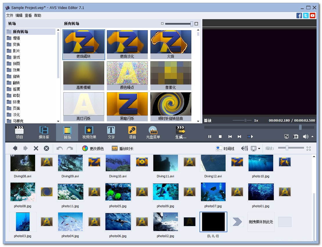 AVS Video Editor是一个强大的影像编辑软件,帮助用户整理收藏的影片,记录下你人生中激动人心的时刻,可以从多种外置设备中直接录入影像,剪辑自动高速,提供多种可选的效果和风格,可用图片组成数码幻灯片,支持DVD影像记录。