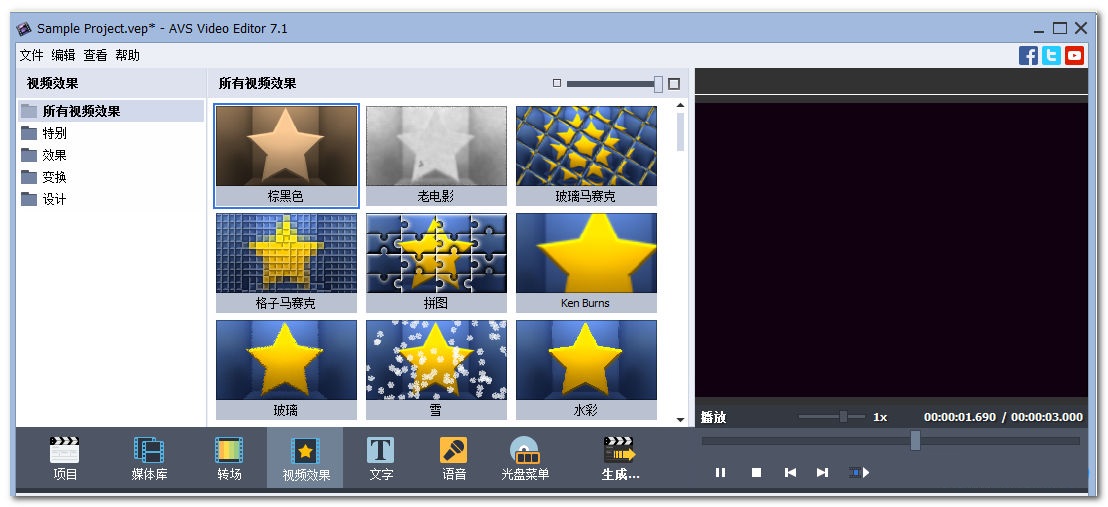 软件可以作为简易DVD编著软件使用,支持DVD、Divx/Xvid DVD、Blu-ray输出,并自带了很多DVD Menu模板,也支持HD/Blu-Ray视频编辑,可导入Blu-ray、HD Video、TOD、MOD、M2TS等格式,添加视频效果及特别设计的菜单等。【avs video editor软件功能】