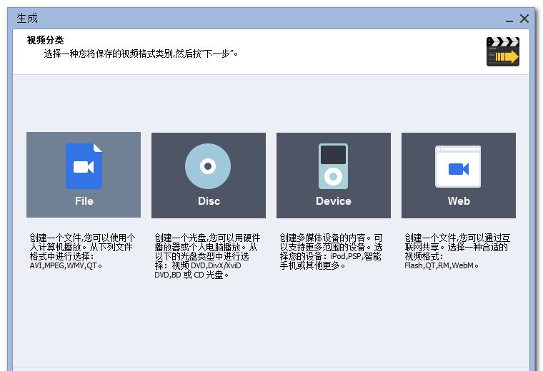可直接生成多种视频文件格式,并可直接制作成光盘