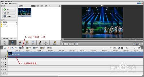首先要确定是否选定了视频文件所在的通道,单机鼠标左键即可选择。然后选择“裁切”功能。