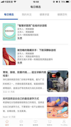 4、健康圈:专家讲堂,科普文章,健康动画等健康咨讯,为用户提供全面的健康关怀,让用户随时随地能接收医生的健康建议。