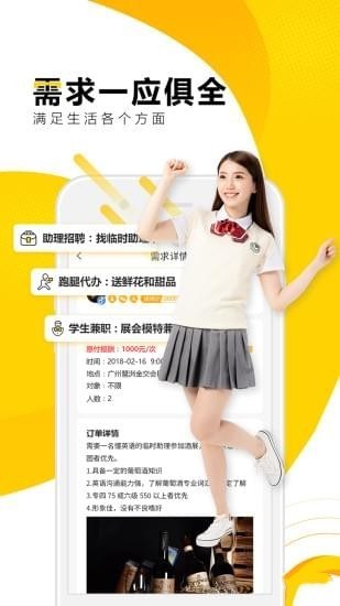 全城握手app基于LBS定位功能,智能匹配周边人进行互助互动,构建一个能无缝链接碎片化时间的服务平台,提升城市里每一个人的时间、技能价值,随时随地解决燃眉之急。