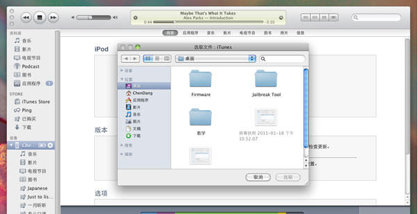 第二步、打开iTunes,安装Option键(Windows系统按住"Shift"键),选择对应的官方固件版本:
