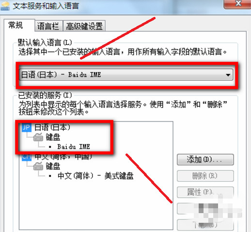 1、如果想要设置新的内容可以在下方设置,想要变为原来的输入法只要将日文输入法删除,选择原来的即可
