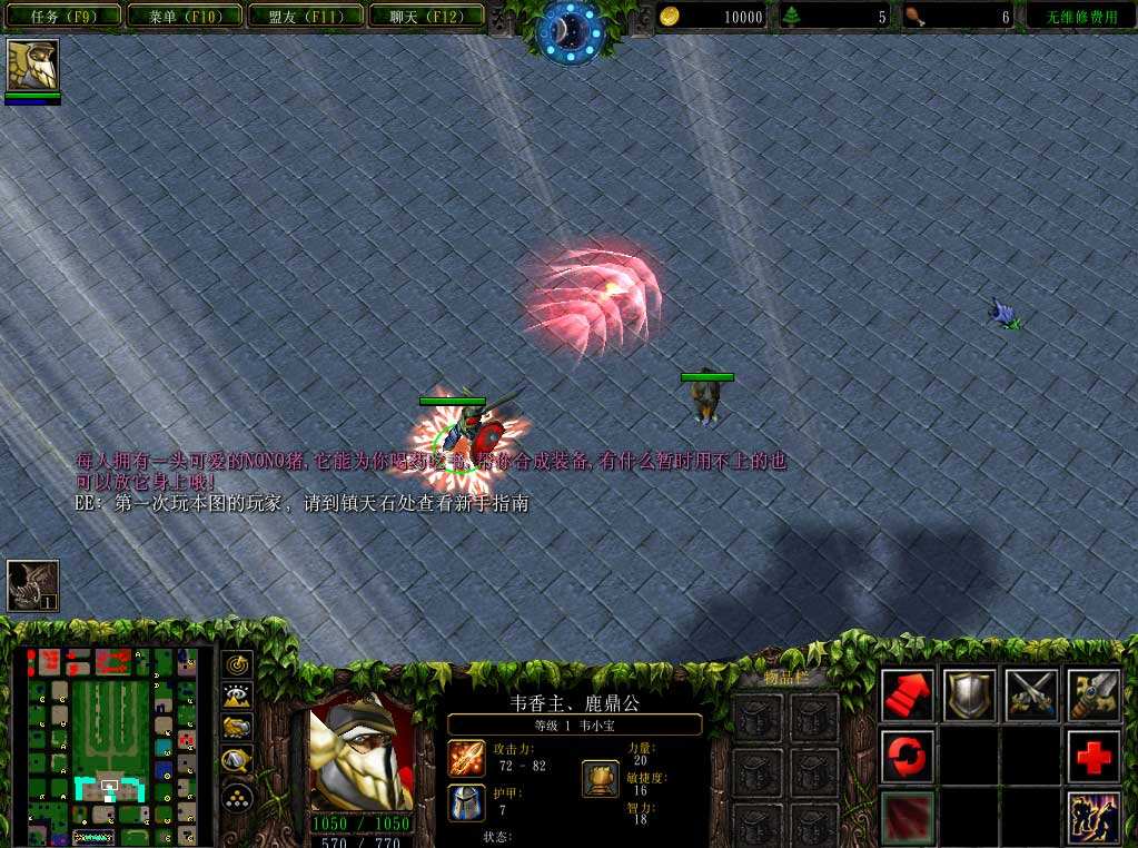 这张图隐藏英雄只能靠随机的。任何一个版本都没有密码还有就是两个隐藏英雄。 一个是梦幻4N(力量形)。 一个是金猪(敏捷形)。