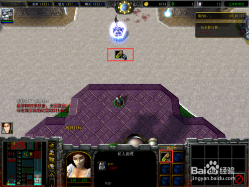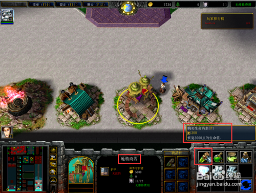 吸血之剑和属性护盾购买完成之后,就可以控制英雄去抵抗前几波敌人的攻击了。这样就可以轻松的抵抗敌人小兵的攻击了。在第一个boss来临之前,控制私人助手去地精商店购买生命药水,一次300金币就是10瓶,购买2次20瓶就够了。