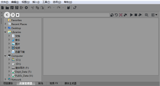 以上窗口,相信大家可以看出,项目媒体和资源管理器这两个界面并没有什么改动,改动的主要是转场和视频效果的界面。