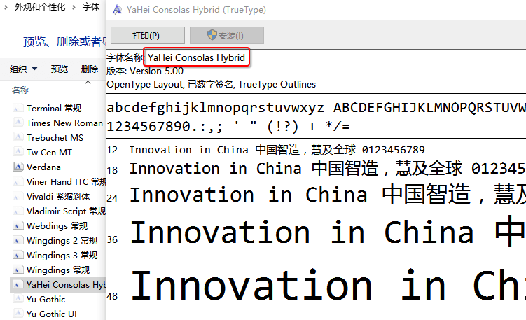 Win 上通过搜索或控制面板进入字体文件夹,然后双击字体查看字体名称;通过软件,如记事本、Office 等也可以查看字体名字: